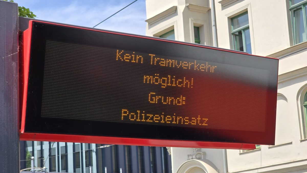 Wegen der Rettungs- und Polizeimaßnahmen war die Straßenbahnstrecke zwischen Marktplatz und Hallmarkt in beiden Richtungen für fast eine Stunde blockiert.