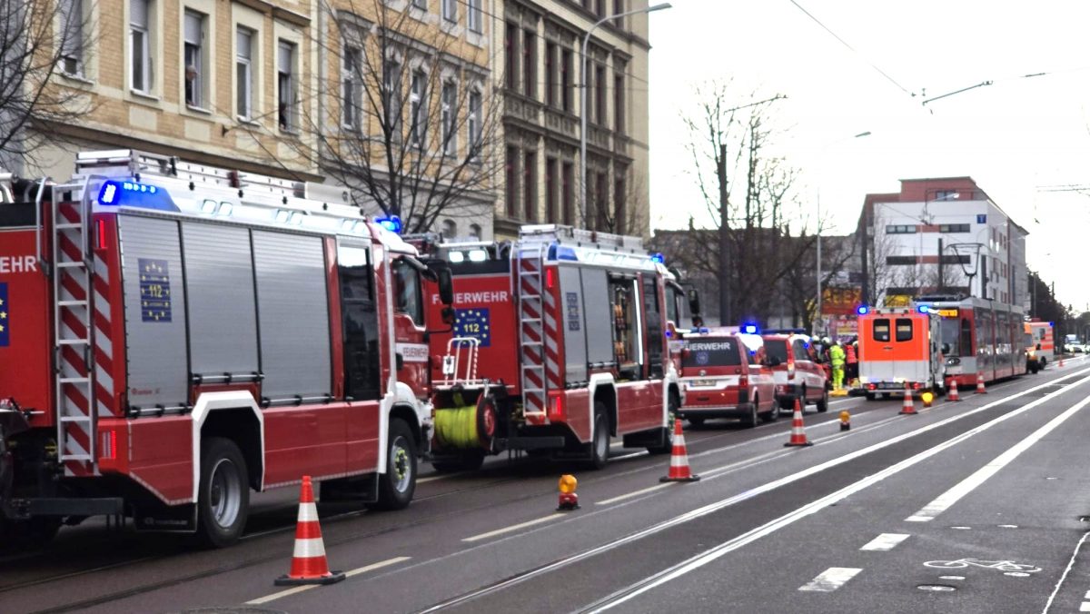 Feuerwehr muss schwer verletzten Autofahrer befreien: Unfall zwischen Straßenbahn und PKW in der Beesener Straße
