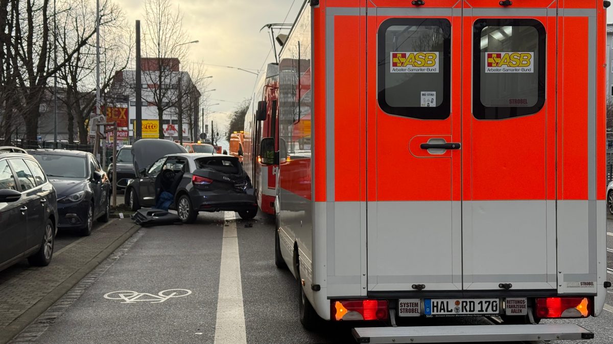 Am Freitagvormittag gegen 9.20 Uhr hat sich in der Beesener Straße ein schwerer Unfall zwischen einem Pkw und einer Straßenbahn in der Beesener Straße. Das Auto wollte abbiegen und stieß dabei mit der vorfahrtsberechtigten Bahn zusammen.