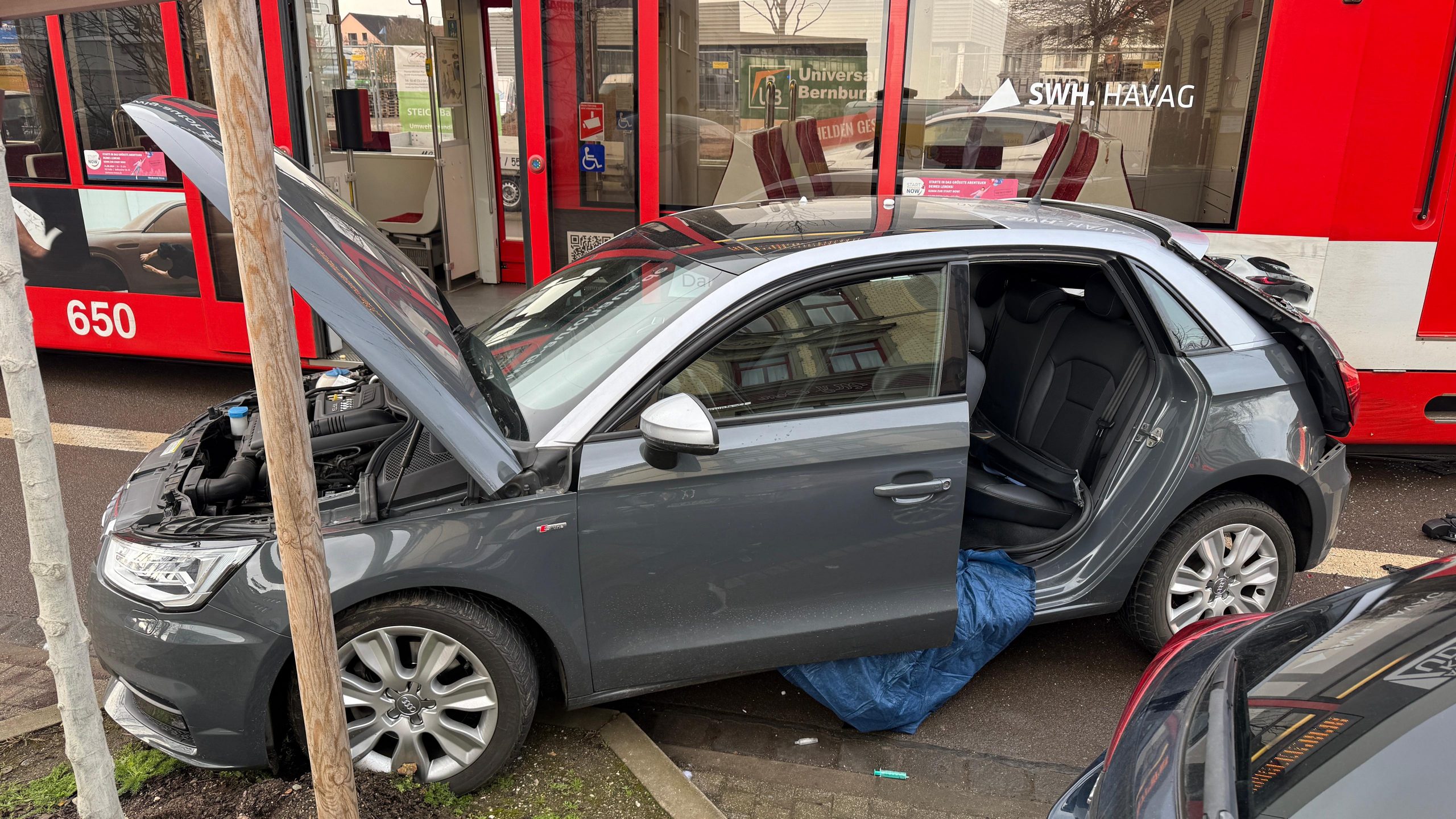 Ich frage mich, wie dort überhaupt ein Unfall passieren kann. Zumal die Straßenbahn kurz vorher eine Haltestelle hat und eigentlich kaum Geschwindigkeit hat, um so viel Schäden zu verursachen. Am wahrscheinlichsten ist wohl, dass jemand rückwärts ohne zu gucken aus der KSB-Ausfahrt wieder rausgefahren ist. Auf den Parkplätzen kann er ja nicht gestanden haben. Oder er hat versucht, noch schnell vor der Straßenbahn in die KSB-Ausfahrt reinzufahren. Das würde die schweren Schäden erklären. Aber dann sollte man den Führerschein dauerhaft einziehen und am besten die Geschlossene empfehlen.