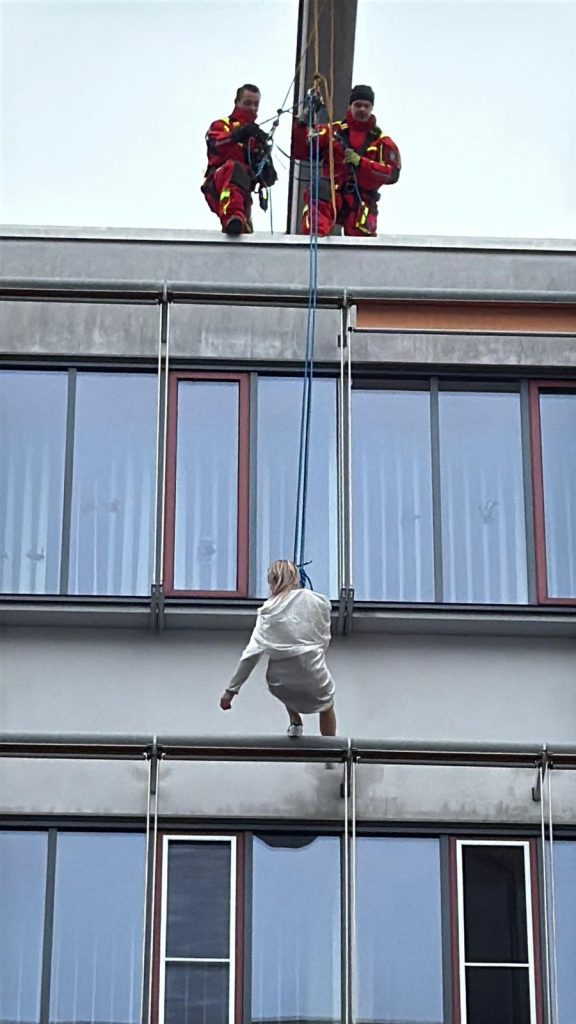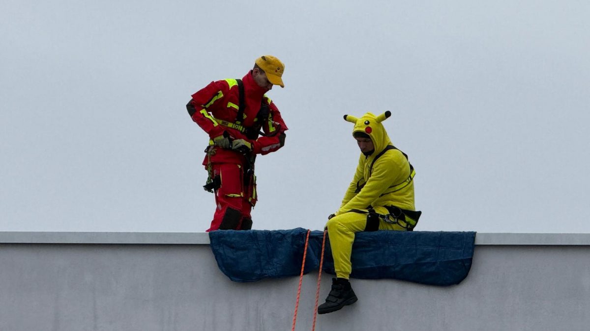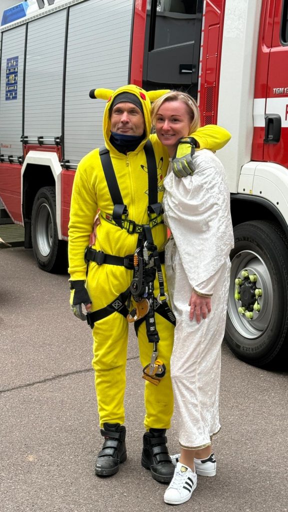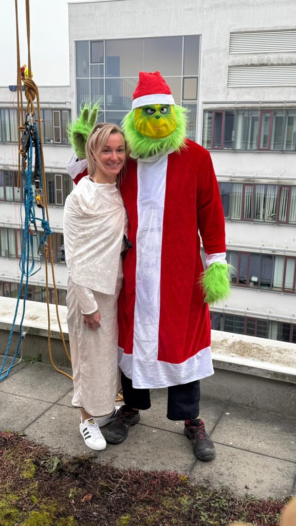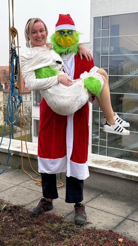 Besonders bemerkenswert ist die Mischung aus Professionalität und spielerischer Leichtigkeit, die das Team an den Tag legt. Die Höhenretter sind spezialisiert auf anspruchsvolle Einsätze – die Rettung aus Höhen und Tiefen, vom Turm, am Gebäude, im schwierigen Gelände. Doch an diesem Tag werden aus Einsatzkräften lebende Weihnachtsfiguren. Damit das gelingt, müssen Kostüme und Sicherheitsausrüstung perfekt miteinander harmonieren. Der Weihnachtsmann-Gurt ist so präpariert, dass der rote Mantel nicht verrutscht. Die Flügel des Engels sind windsicher befestigt. Pikachús Ohren bleiben auch in der Abseilbewegung stabil. Und der Grinch, obwohl wild gestikulierend, bleibt stets sicher im Seil. So entsteht eine Mischung aus Profession und Performance, aus Ernst und Verspieltheit – und genau diese Kombination macht die Aktion so besonders. Denn hinter den farbenfrohen Figuren stehen echte Menschen, die ihre Zeit, ihren Mut und ihr Können schenken, um anderen Freude zu bereiten.