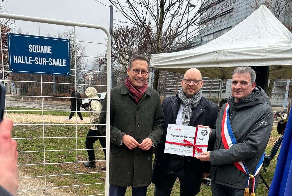 „Ich freue mich, dass anlässlich des 50-jährigen Bestehens der Städtepartnerschaft mit der französischen Stadt Grenoble nun auch ein Platz den Namen Halle an der Saale trägt“, so Vogt. „Städtepartnerschaften ermöglichen Kooperationen auf Ebene der Kultur und Bildung. Ich freue mich besonders, dass unser Kunstmuseum Moritzburg erstmals eine in Halle entwickelte Ausstellung in Grenoble zeigen wird“.