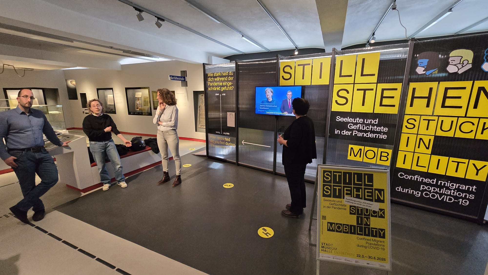 Die Ausstellung sei ein “Aufruf hinzuschauen, zu den Leuten, die wir meist ignorieren”, sagte Medienwissenschaftlerin Maren Schuster von der Martin-Luther-Universität Halle Wittenberg, die Ausstellung mit konzipiert hat. “Wir haben in der Pandemie sehr wenig gehört über die Seeleute”, meinte Dr. Luisa Piart vom Max-Planck-Institut für Ethnologische Forschung. Ihr Ansinnen mit der Ausstellung sei es, dass die Forschungsergebnisse sich nicht nur in wissenschaftlichen Publikationen wiederfinden, sondern auch öffentlich gezeigt werden. “Schon früh in der Pandemie hat sich gezeigt, dass die Situation in den Sammelunterkünften problematisch ist”, sagt Sozialmediziner Dr. Amand Führer von der Martin-Luther-Universität Halle-Wittenberg.