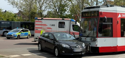 Straßenbahn und PKW kollidieren in der Mansfelder Straße