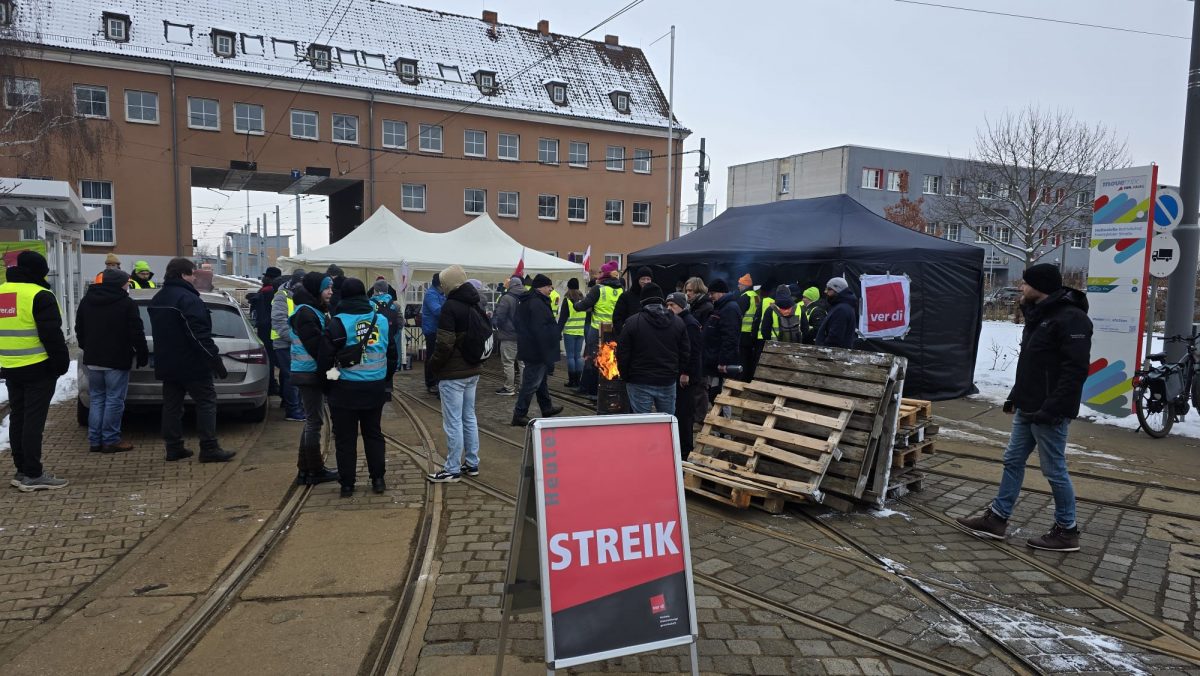 Heute bleibt Halle (Saale) stehen. Keine Busse, keine Straßenbahnen, keine vertrauten Geräusche aus dem Takt des Alltags. Stattdessen Kälte, Minusgrade, Dampf aus dem Atem – und eine Feuertonne vor dem Betriebshof in der Freiimfelder Straße. Seit zwei Uhr halten die Beschäftigten der Halleschen Verkehrs AG (HAVAG) aus. Nicht aus Lust am Stillstand, sondern aus Notwendigkeit. Der bundesweite Streik im öffentlichen Personennahverkehr, zu dem ver.di aufgerufen hat, ist auch in Halle angekommen. Und mit ihm eine Debatte, die weit über Tarifrunden hinausreicht: Wie viel ist uns der öffentliche Dienst wert? Wie ernst meinen wir es mit Verkehrswende, sozialer Gerechtigkeit und Respekt vor Arbeit? Auf einigen Routen sind parallel OBS-Busse unterwegs, auch die S-Bahnen fahren. Informationen dazu hier.