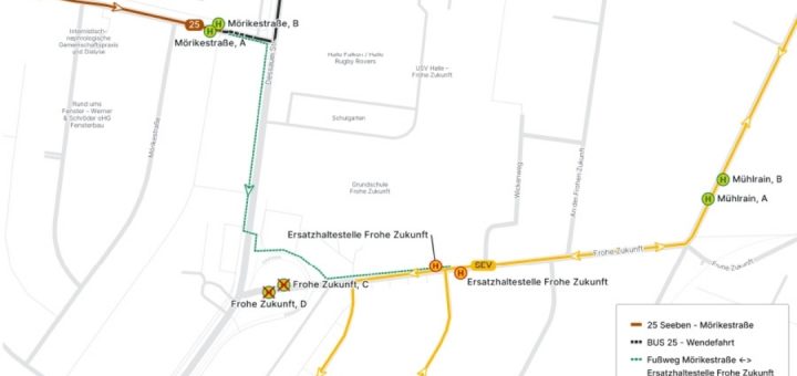 Ab sofort ist die Ludwig-Wucherer-Straße zwischen Lessingstraße und Schillerstraße Richtung Reileck. Die Haltestelle wird erneuert, der Fahrgastunterstand ausgetauscht. Die Umleitung erfolgt über Carl-von- Ossietzky-Straße/ Schillerstraße. Die Bauarbeiten sollen bis zum 24. Oktober dauern.