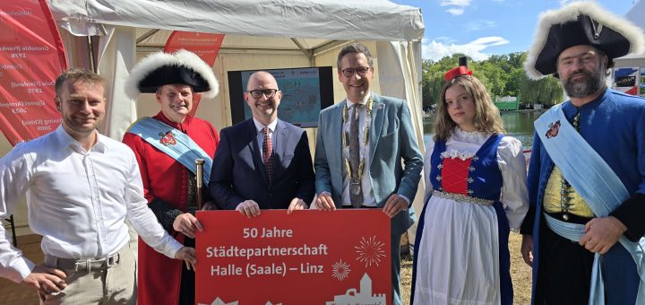 Zum 50. Jubiläum der Städtepartnerschaft zwischen Halle (Saale) und Linz in Österreich fand heute ein festlicher Höhepunkt statt: Der Linzer Bürgermeister Dietmar Prammer trug sich im Beisein seines Hallenser Amtskollegen Oberbürgermeister Dr. Alexander Vogt...