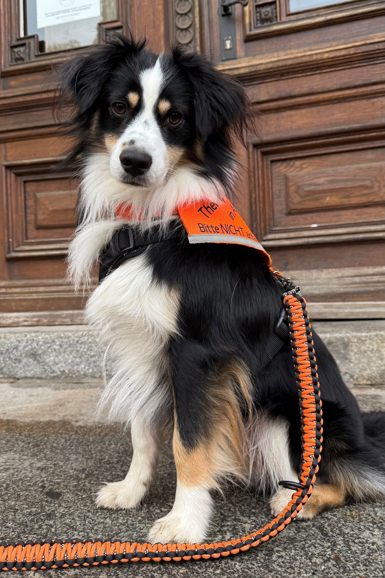 Ein aufmerksamer Blick, ein wedelnder Schwanz und viel Neugier im Gepäck: Domino begleitet seine Besitzerin und Ergotherapeutin Carolin Braunersreuther seit dem Sommer mehrmals die Woche an seinen zukünftigen Arbeitsplatz – die Psychiatrische Institutsambulanz der Universitätsmedizin Halle. Der junge Mini Australian Shepherd befindet sich in Ausbildung zum Therapiebegleithund und sammelt dabei im Klinikalltag erste Erfahrungen, die ihn Schritt für Schritt auf seine spätere Aufgabe vorbereiten. Schon jetzt sorgt seine zutrauliche Art im Team und bei Patient:innen für spürbar mehr Nähe und Vertrauen.