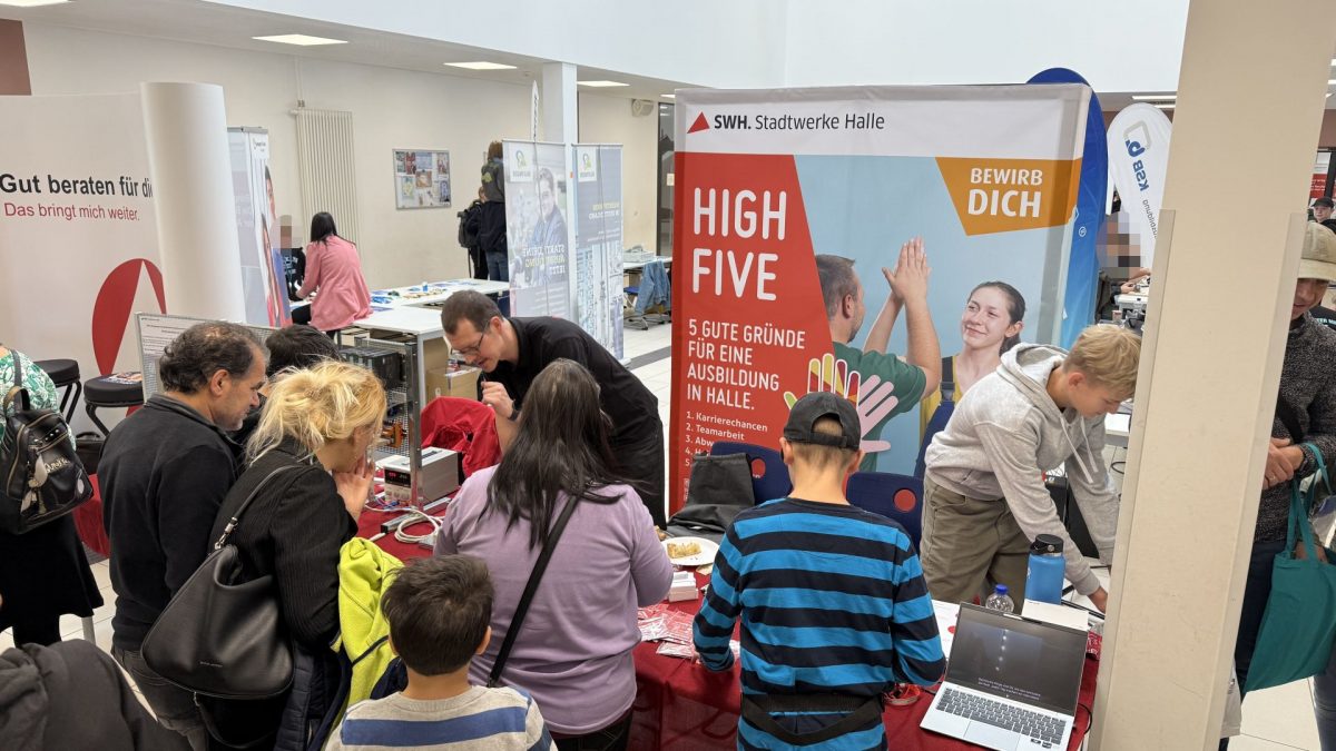 Mit dabei waren unter anderem DELL Halle GmbH, Bauer Elektroanlagenbau GmbH, GISA GmbH, Günter Papenburg AG, KSB AG und Sonotec GmbH. Die Messe bot jedoch nicht nur Informationen, sondern auch viel Interaktion: Bei Praxistests und Erlebnisexperimenten konnten Interessierte selbst Hand anlegen. Wer den MINT-Parcours erfolgreich meisterte, nahm automatisch an einer stündlichen Verlosung eines iPhones teil.