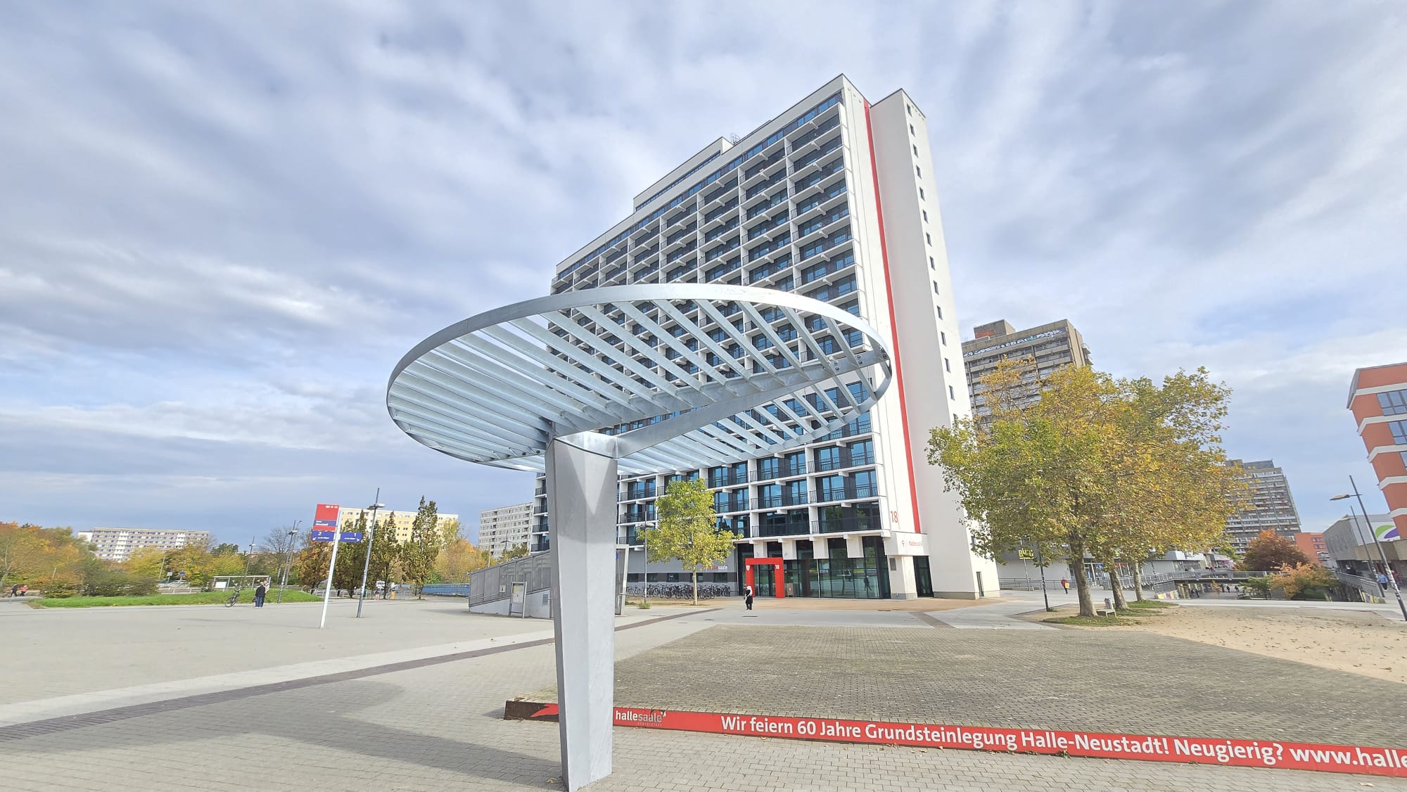 Überdimensionale Reißzwecken als Kunst und Schattenspender – 7 weitere Kunstwerke in Halle-Neustadt kommen bis Ende November