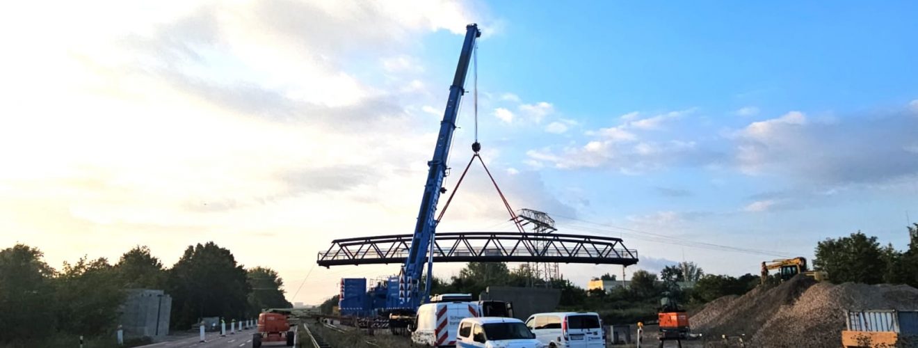 Ein riesiger Kran hat am Samstagmorgen die neue Fußgängerbrücke über die B80 am Kinderdorf in Halle-Neustadt eingehoben. Die Brücke wird vor allem von den Mitarbeitenden der Firmen im Gewerbegebiet genutzt. Zaungäste gab es aber … Um 6.24 Uhr schwebte die neue B80-Brücke in Halle-Neustadt los weiterlesen