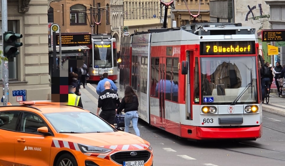 Am Freitagnachmittag war der Straßenbahnverkehr zwischen Marktplatz und Steintor in Halle (Saale) für eine halbe Stunde unterbrochen.