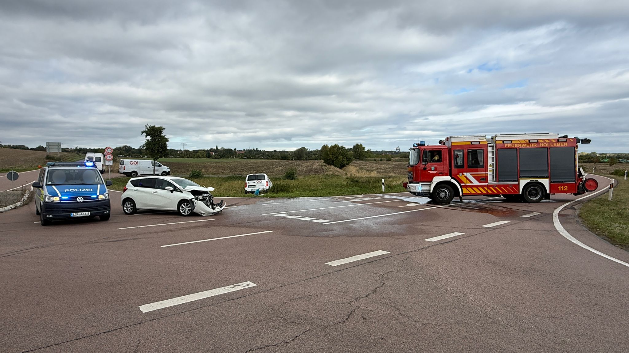 Am Mittag hat sich ein Unfall an der Kreuzung L164n / Autobahnzubringer nach Zscherben und Angersdorf ereignet. Zwei Autos sind zusammengestoßen. Ein Fahrzeug landete im weiteren Verlauf im Graben.
