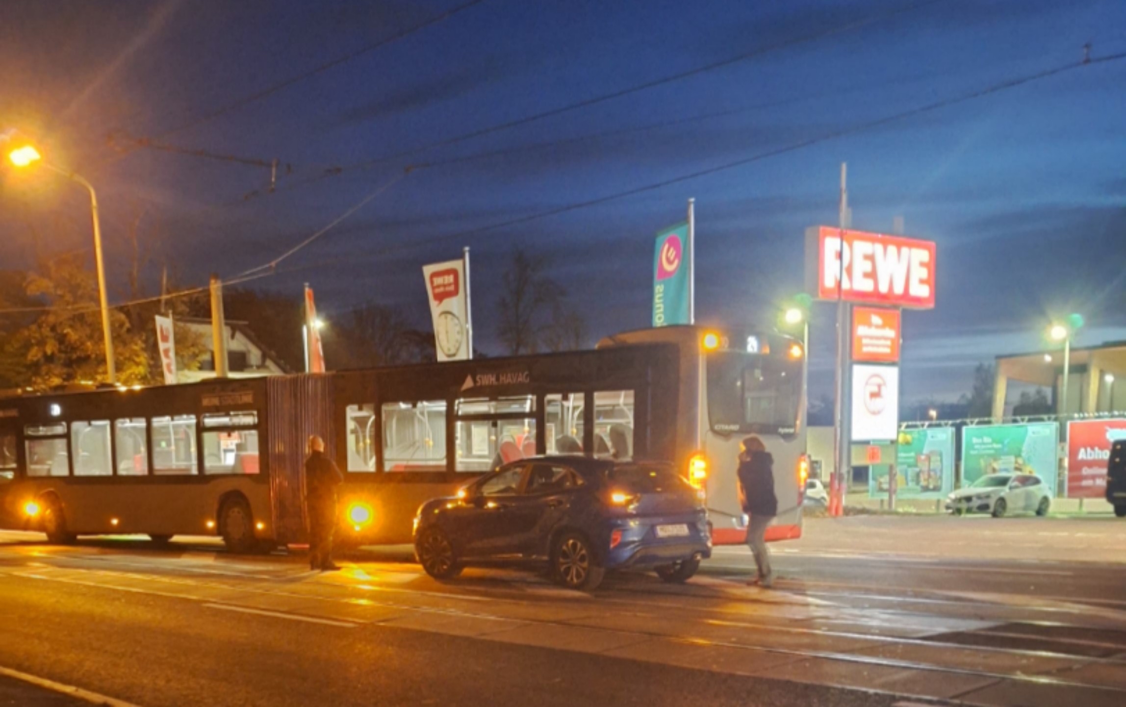 Am Dienstagmorgen kurz nach 6 Uhr kam es in der Merseburger Straße stadteinwärts zu einem Verkehrsunfall. Dort sind ein anfahrender Bus der Linie 24 und ein PKW, der über die Sperrfläche hinweg überholen wollte, zusammengestoßen. Verletzte gab es nicht, es blieb bei Blechschäden. Für eine halbe Stunde war auch der Straßenbahnverkehr blockiert.