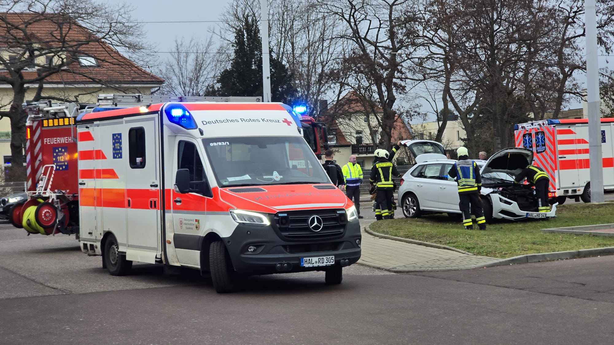 Ein schwerer Verkehrsunfall hat sich am Freitagnachmittag in der Delitzscher Straße in Halle (Saale) ereignet. In Höhe Einkaufszentrum Büschdorfer Mitte stießen eine Straßenbahn und ein abbiegendes Auto zusammen. Die Feuerwehr musste den Autofahrer befreien.