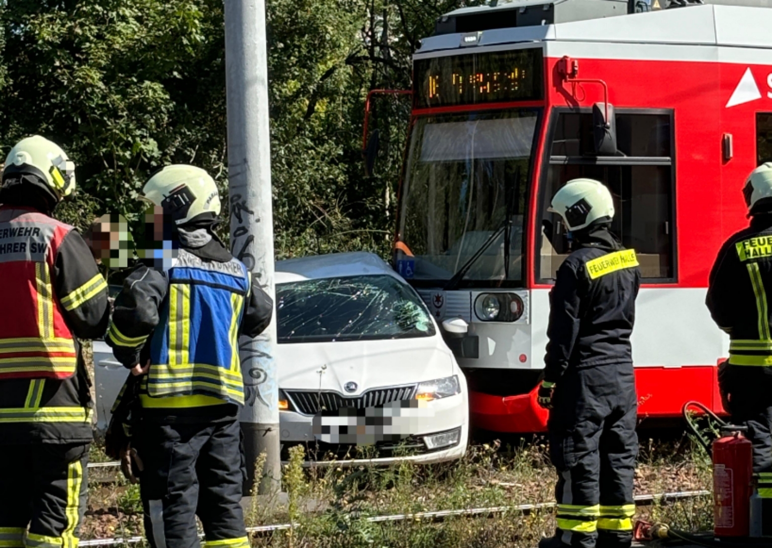 Am Mittwochvormittag hat sich ein schwerer Unfall in der Freyburger Straße zwischen einem Pkw und einer Straßenbahn ereignet. Die Autofahrerin aus Köthen war zunächst im Wrack eingeklemmt.