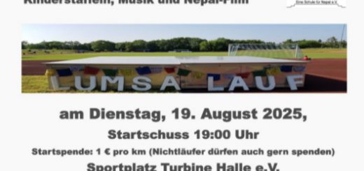 Am heutigen Dienstag gibt es um 19 Uhr den mittlerweile 17. LUMSA-Lauf auf dem Turbine-Sportplatz in Halle (Saale), nachdem der Lauf im vergangenen Jahr wegen Corona ausfallen musste. Die Startgebühr beträgt 1 Euro. Das Geld ist für den Lumsa e.V. bestimmt, der damit eine Schule im Lumsa-Tal in Nepal unterstützt.