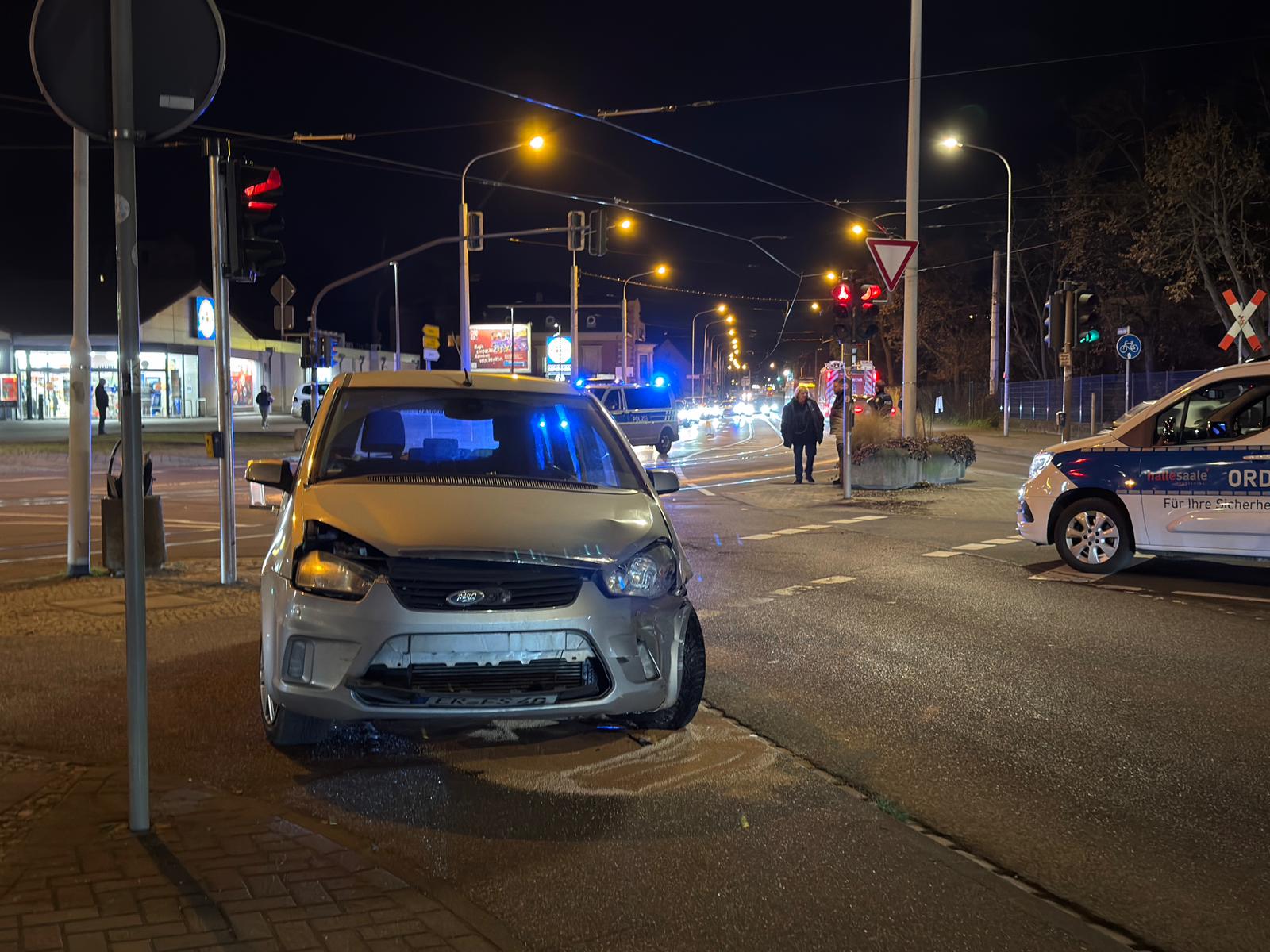 Am Freitagnachmittag hat sich ein Verkehrsunfall an der Kreuzung Trothaer Straße / Köthener Straße ereignet. Die Feuerwehr musste auslaufende Betriebsstoffe binden. Zudem war der Straßenbahnverkehr für anderthalb Stunden blockiert, weil ein Unfallauto die Gleise blockierte.