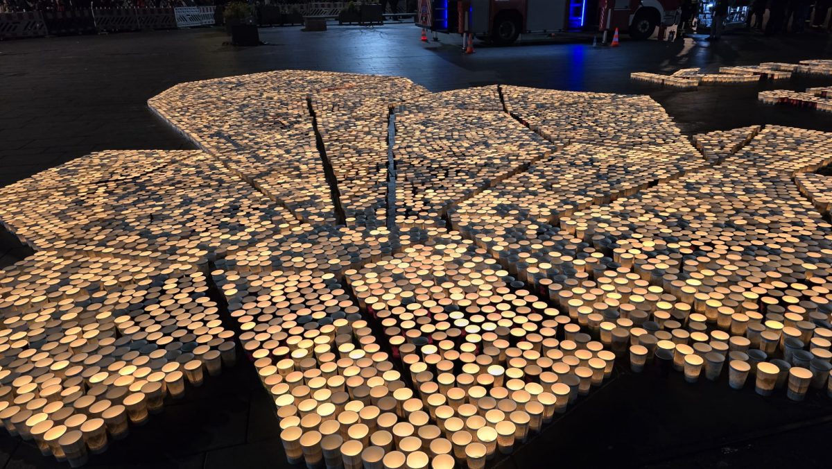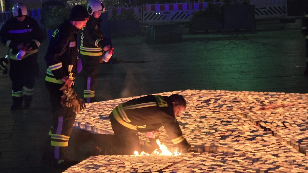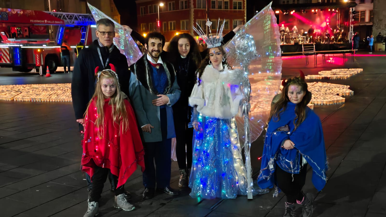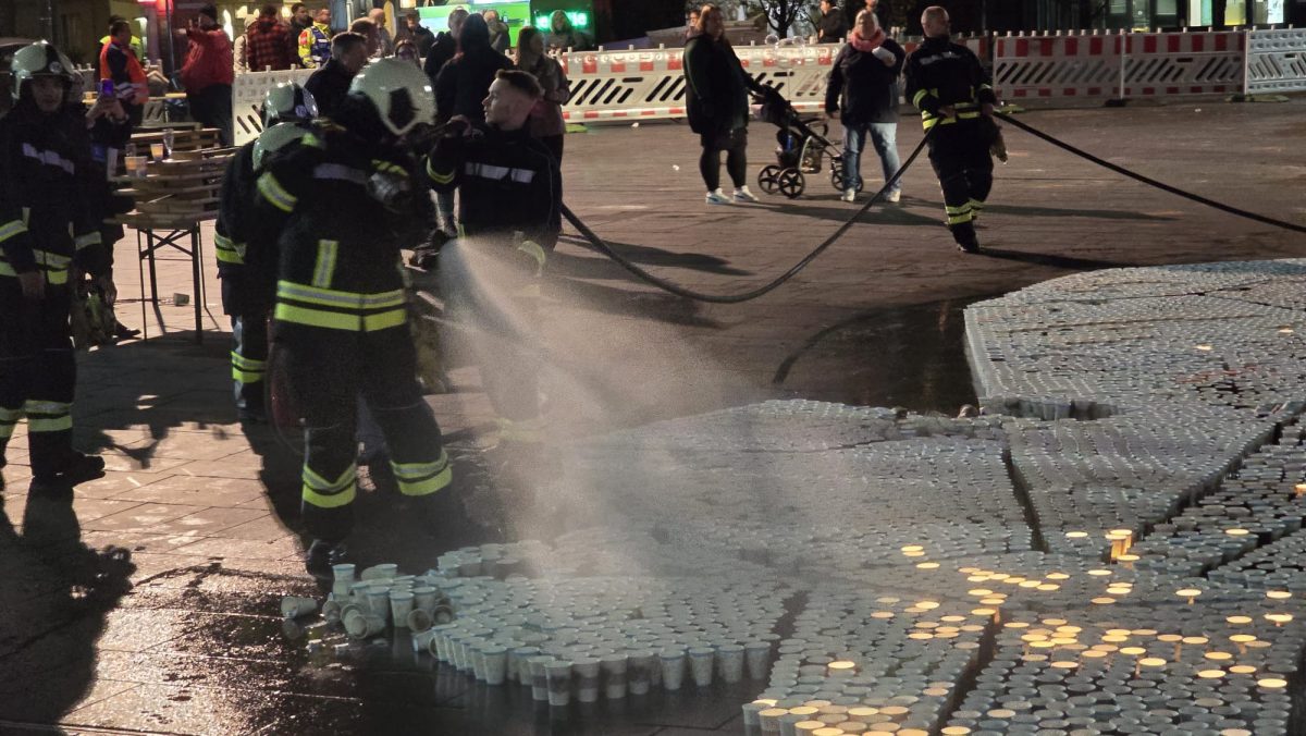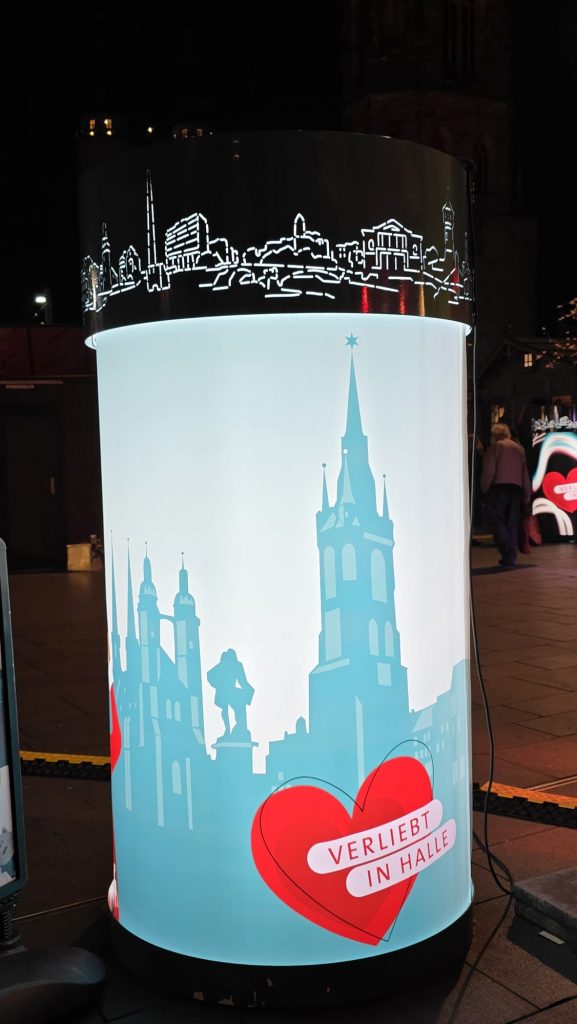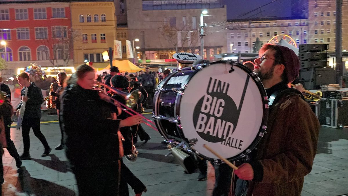 Sonntag entstand auf dem Marktplatz ein Lichterbild. 11.846 Teelichter leuchteten und bildeten den Schriftzug “Kristalle für Halle” und einen stilisierten Salzkristall. Aud der Bühne standen unter anderem die Uni-Bigband und Opernsänger Claus Ostertag. Zum Abschluss zündete Bombenschmidt noch sein Feuerwerk.