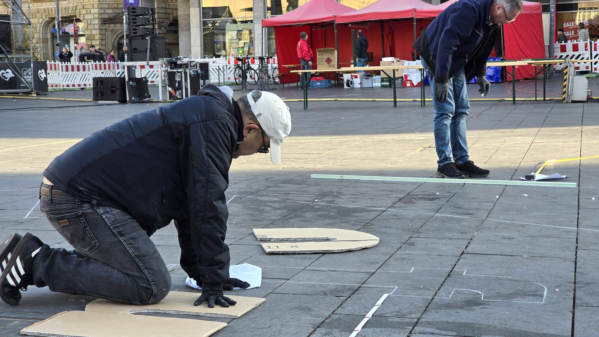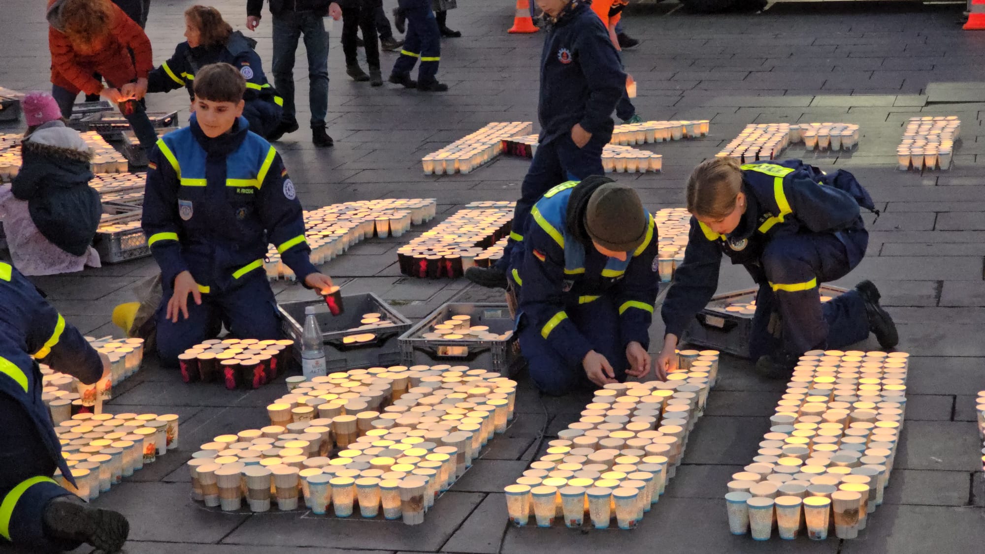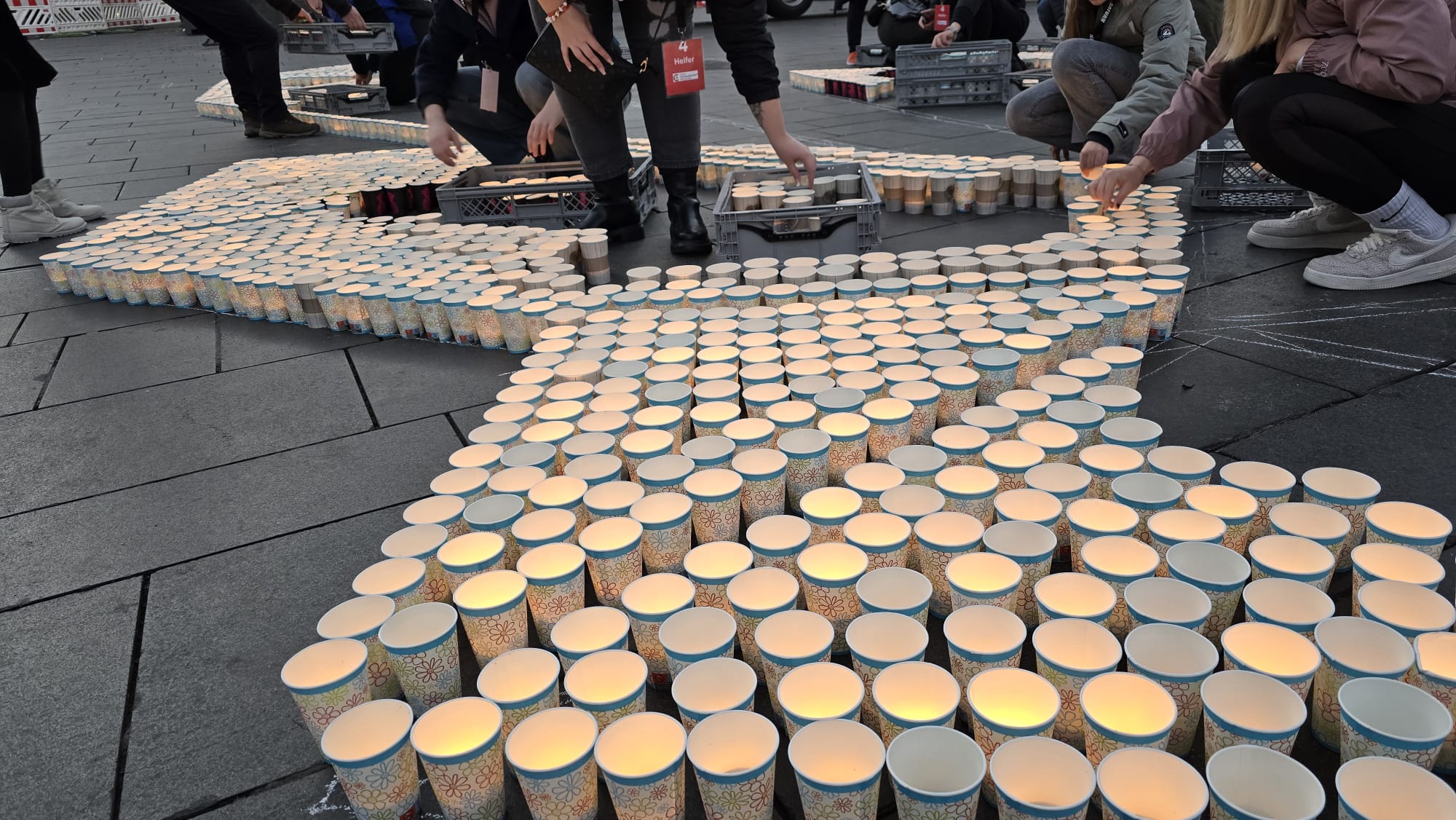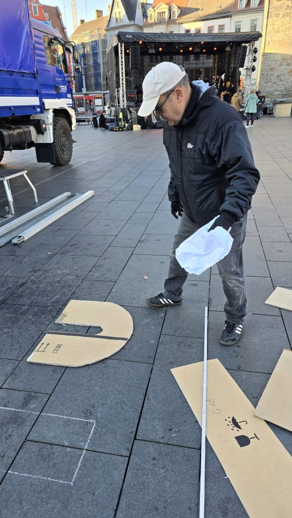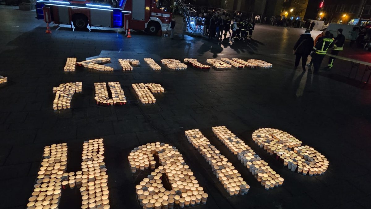 Sonntag entstand auf dem Marktplatz ein Lichterbild. 11.846 Teelichter leuchteten und bildeten den Schriftzug “Kristalle für Halle” und einen stilisierten Salzkristall. Aud der Bühne standen unter anderem die Uni-Bigband und Opernsänger Claus Ostertag. Zum Abschluss zündete Bombenschmidt noch sein Feuerwerk.