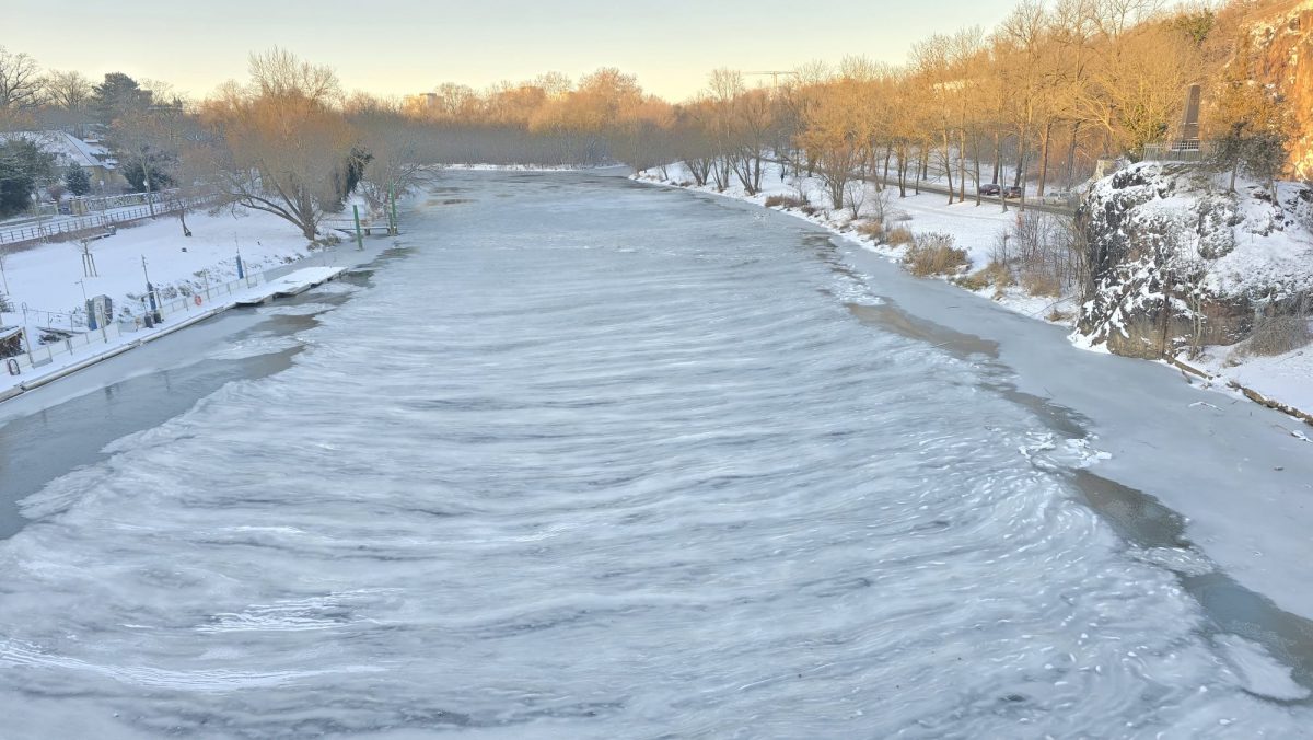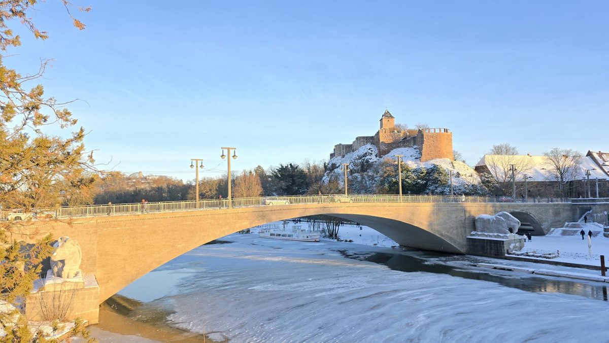 Wer in den frühen Morgenstunden den Weg über die Brücken der Stadt wagte, wurde mit einem seltenen Naturschauspiel belohnt. Während die Außenluft eisig war, wirkte die Saale beinahe lebendig. An den Stellen, an denen die Strömung das Wasser noch offen hielt, schien der Fluss regelrecht zu „dampfen“. Dieses physikalische Phänomen entsteht, wenn die extrem kalte Luft auf das – im Vergleich dazu – deutlich wärmere Wasser trifft. Obwohl das Flusswasser selbst eisig ist, sorgt die Differenz zur zweistelligen Minustemperatur der Luft für aufsteigende Nebelschwaden.