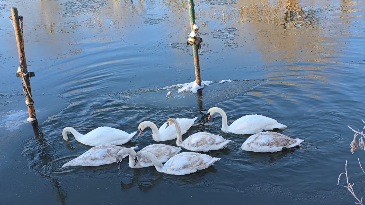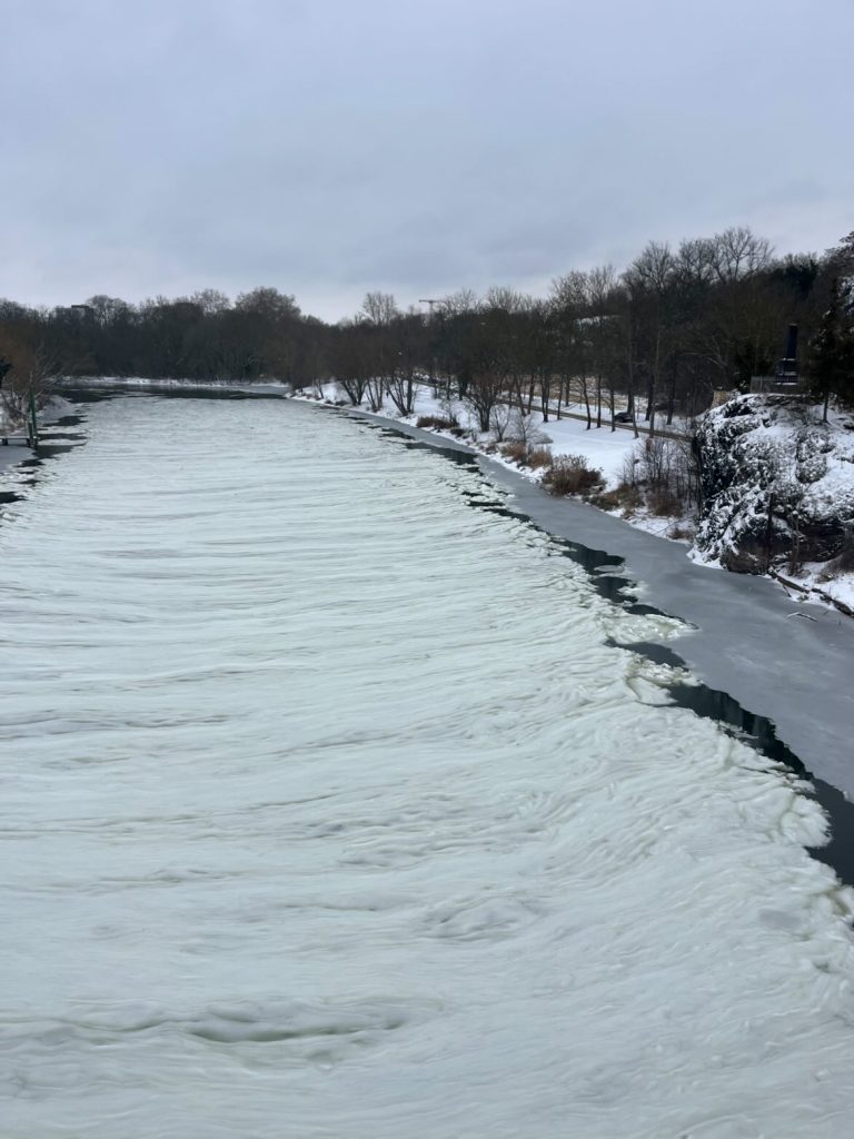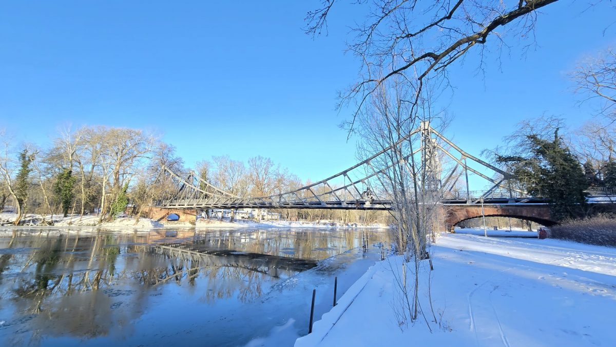 Besonders eindrucksvoll zeigte sich dies an der „Brücke der Freundschaft“. Inmitten der weißen Dampfwolken tummelte sich eine Schwanenfamilie im Wasser und suchte zwischen den Eisschollen nach Nahrung. Es war ein Bild vollkommener Winterruhe, das viele Spaziergänger kurz innehalten ließ, bevor sie ihren Weg durch den tiefen Schnee fortsetzten.