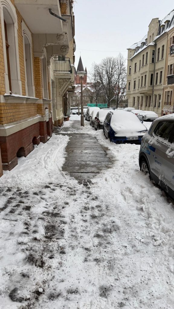 So ein wunderschönes Winterwetter hatten wir in Halle lange nicht und man „musste“ die 2 Tage mit Sonne und Schnee einfach geniessen. Sehr schade, dass ab morgen Schneematsch, Regen oder gar Glatteis diese Idylle beenden…