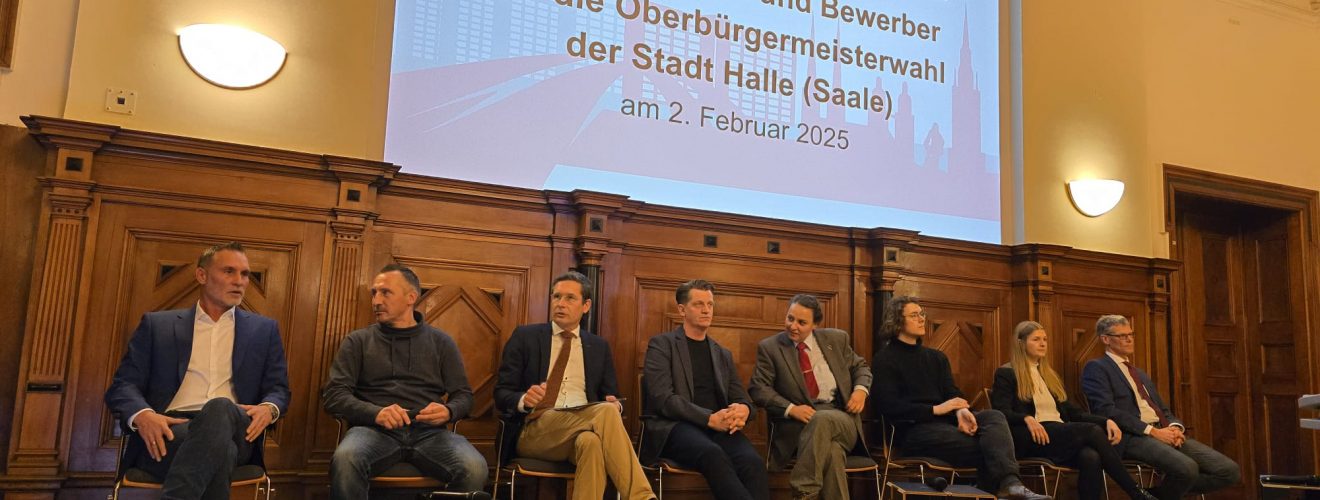Im vollbesetzten Stadthaus haben sich am Donnerstagabend die Kandidierenden für die Oberbürgermeisterwahl in Halle (Saale) am 2. Februar 2025 vorgestellt. Im Podium saßen: Egbert Geier, Kerstin Godenrath, Wolfgang Hoppe, Dörte Jacobi, Sven Macha, Alexander … So lief das erste Wahlforum der OB-Kandidaten: wer hat am besten performt? Wer steht wofür? weiterlesen