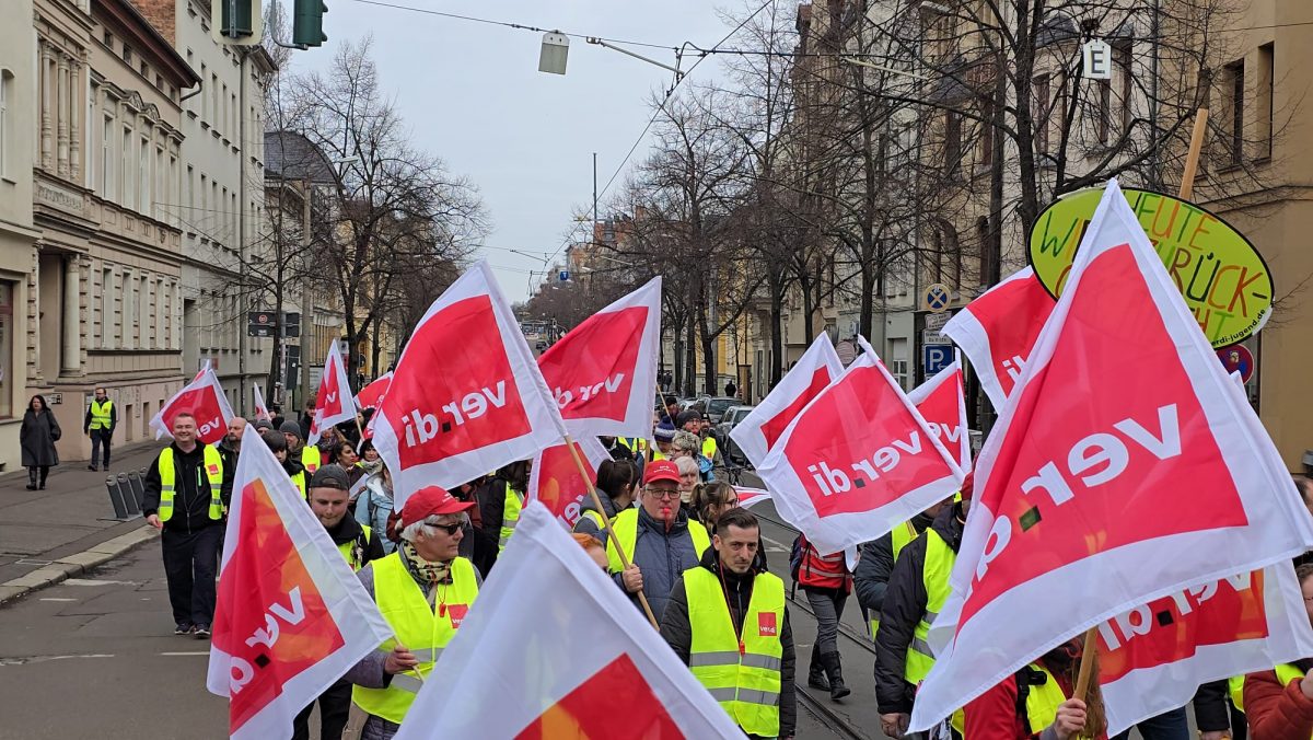 “Was ist vernünftig – 350”: Streikdemo im öffentlichen Dienst zog durch Halle (Saale) – neuer OB Vogt schummelt sich an Kundgebung vorbei