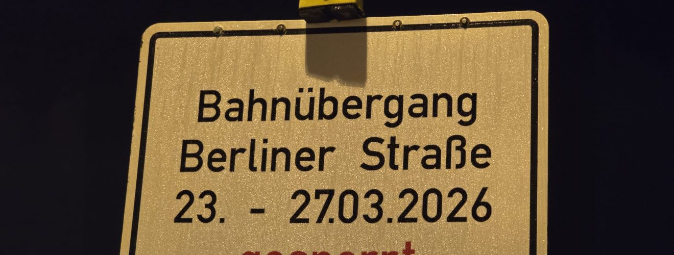Die Berliner Straße wird am Bahnübergang Berliner Straße, Höhe Shell-Tankstelle, nach Angaben der Stadtverwaltung von Montag bis Freitag, 23. bis 27. März 2026, wegen dringend erforderlicher Gleisbauarbeiten voll gesperrt. Eine ausgeschilderte Umleitung erfolgt großräumig … Wegen Gleisbauarbeiten: Berliner Straße in Diemitz kommende Woche gesperrt weiterlesen