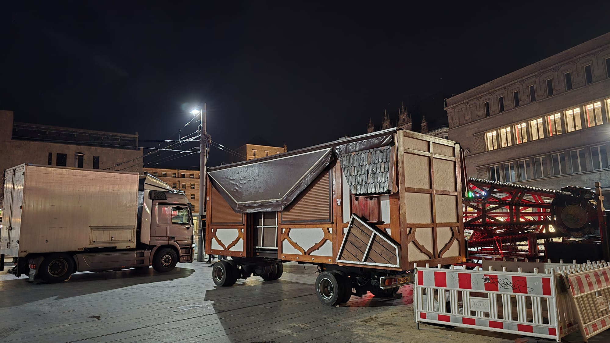Doch bereits jetzt herrscht emsiges Treiben. Am Dienstagabend ist mit dem Aufbau begonnen worden. So stehen bereits die ersten Bauteile für die Glühweinpyramide und die Glühweinmühle da. Insgesamt werden 93 Städte aufgebaut.