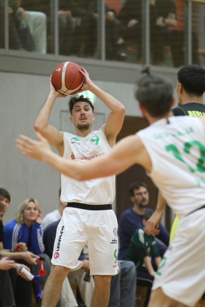 Auch im zweiten Viertel präsentierten sich die Rhinos selbstbewusst. Ein Dreier von Marcus Zawatzki eröffnete den Abschnitt, anschließend trafen Ben Nötzel und Alexander Herrmann mehrfach unter dem Korb. Halle agierte variabel, fand immer wieder den freien Mitspieler und ging mit einer 45:39-Führung in die Halbzeit.