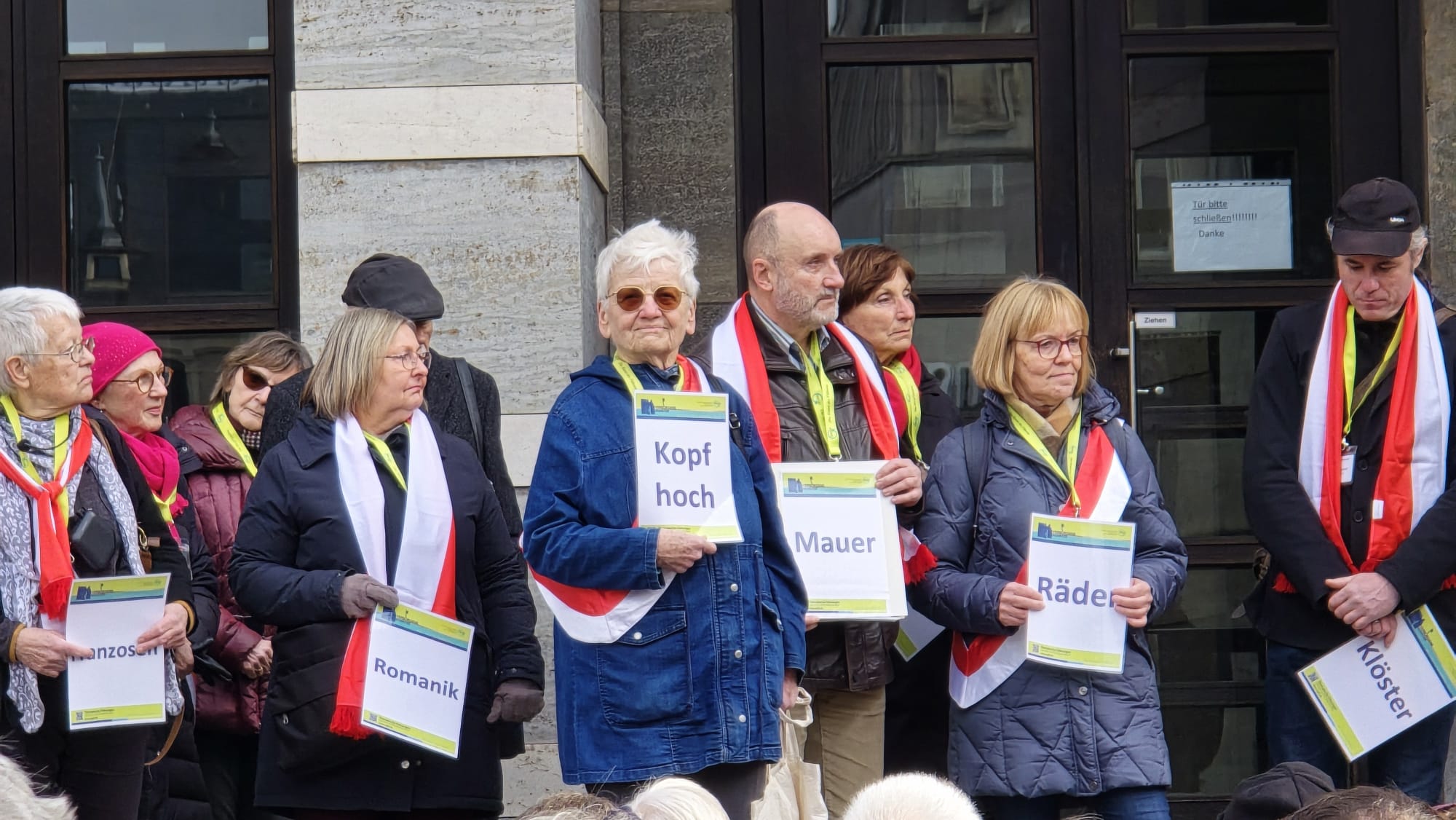 Immer am 21. Februar wird rund um den Planeten der Weltgästeführertag begangen. Weil das Datum aber in diesem Jahr auf einen Wochentag fällt, wird der Tag in Halle (Saale) an diesem Wochenende begangen. Zehn kostenlose Führungen wurden am Samstag angeboten. Und auch am Sonntag, 23. Februar 2025, werden noch Führungen angeboten. Die Teilnahme ist kostenlos. Es wird aber um Spenden für den Wünschewagen des ASB gebeten. Das Wünschewagenteam erfüllt letzte Wünsche von todkranken Patienten.