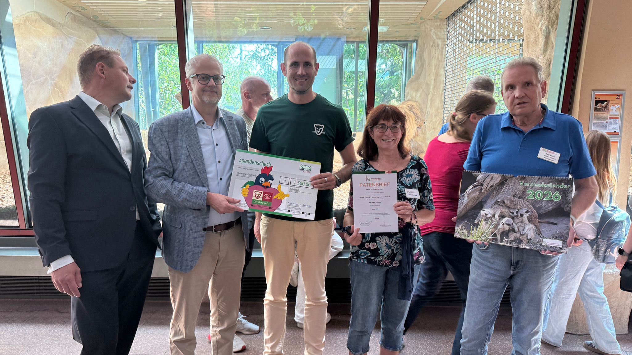 Bereits zum zehnten Mal hat Henry Körner seine Tierpatenschaft für die Erdmännchen verlängert. Dem Zoo-Förderverein hat er einen Scheck über 1.000 Euro überreicht.