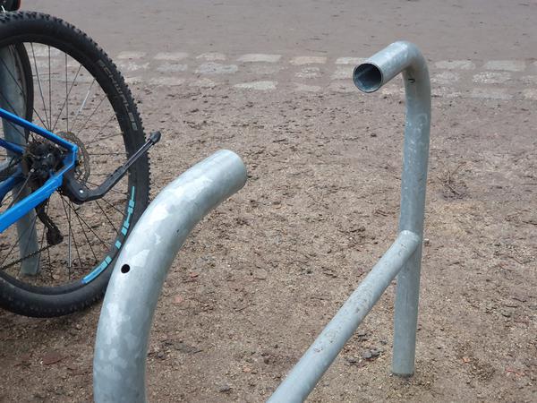 Die Dinger stehen da jetzt seit mindestens zwei Tagen und noch kein einziges Fahrrad steht dran. Da merkt man, dass wieder an den Interessen der Radfahrer vorbei geplant wurde. Das ist kein sicherer Abstellplatz!