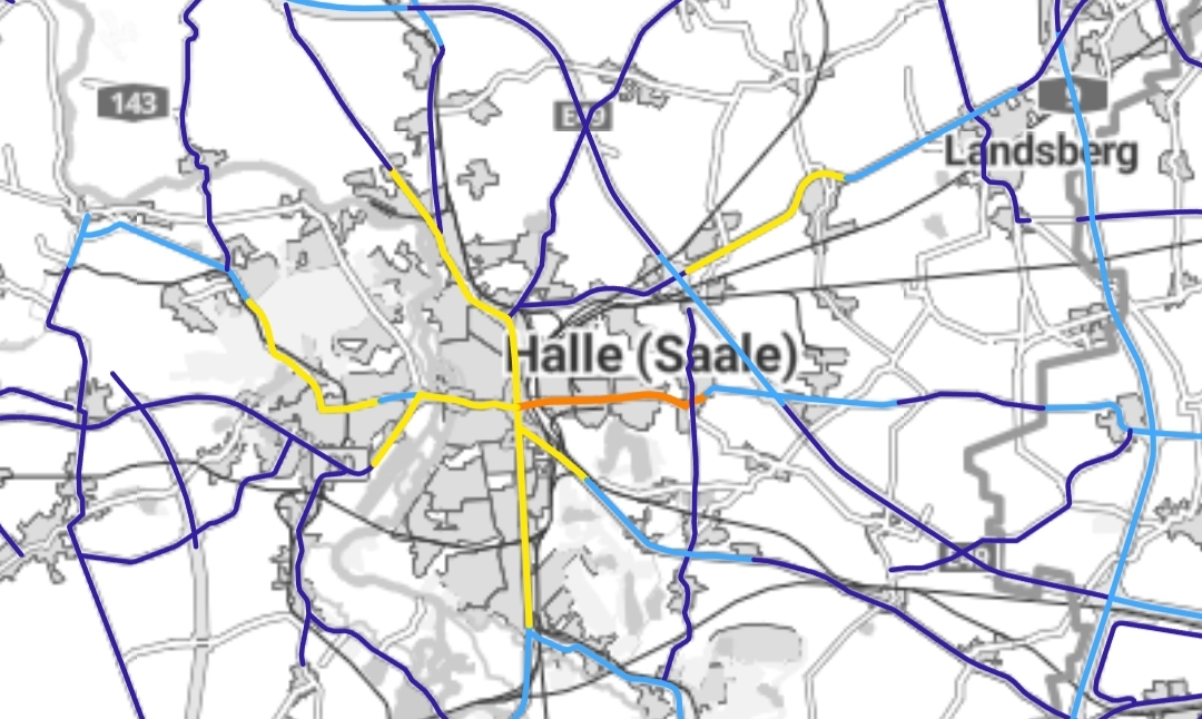 Für den vergangenen Zeitraum konnten mithilfe des Unfallatlas als Unfallschwerpunkte in Sachsen-Anhalt z.B. in der Landeshauptstadt Magdeburg die Albert-Vater-Straße (Auf- und Abfahrt Magdeburger Ring) sowie die sich direkt anschließende Walther-Rathenau-Straße identifiziert werden. In Halle (Saale) kam es im Bereich der Franckestraße zwischen An der Waisenhausmauer und Riebeckplatz vermehrt zu Straßenverkehrsunfällen. Bei Unfällen mit Fahrradbeteiligung fielen in dem Zeitraum die Schwerpunkte in Magdeburg im Bereich Albert-Vater-Straße zwischen Kreuzung Ebendorfer Straße und Magdeburger Ring auf. In Halle (Saale) befanden sich Unfallschwerpunkte mit Fahrradbeteiligung im Bereich Große Steinstraße Kreuzung Barfüßerstraße und im Gebiet um den Rannischen Platz.